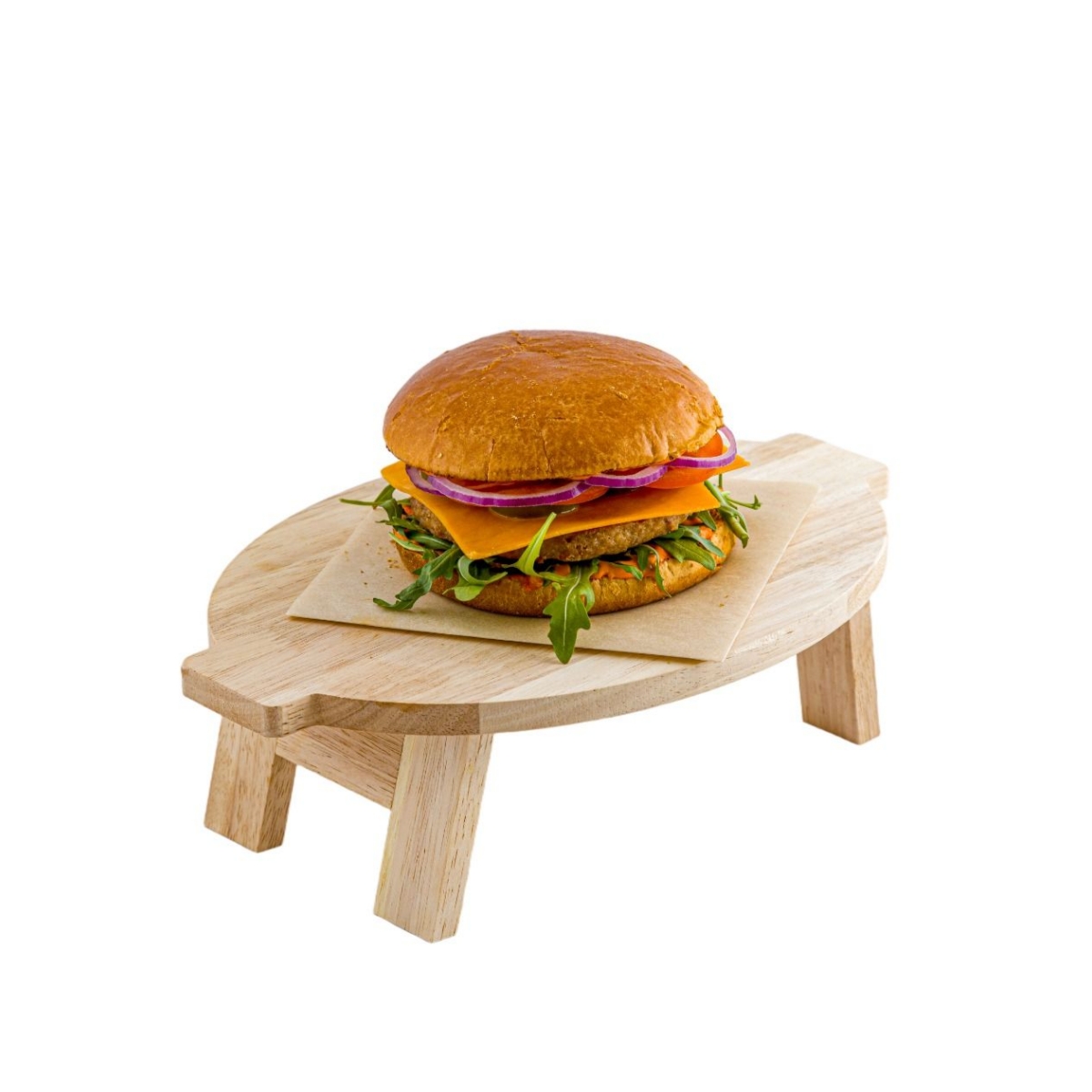 Нежная булочка бриошь, сочная говяжья котлета, свежая рукола и ароматный сыр чеддер создают неповторимый вкусовой букет. Паста табоджан, майонез и соус шрирача придают бургеру пикантность и остроту, а халапеньо добавляет пикантную нотку. Помидоры и красный лук вносят в бургер свежесть и хрусткость.
