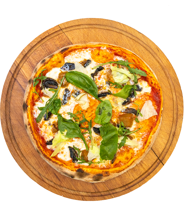 Несколько видов ароматных грибов в сочетании с насыщенным вкусом трюфельного масла и свежестью микса салатов создает неповторимый вкус. Эта пицца идеально подойдет для любителей грибов и настоящих гурманов.