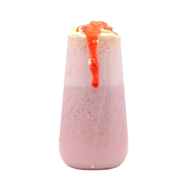 Свежий, нежный и насыщенный напиток, приготовленный из натуральных ингредиентов: ванильного мороженого, свежего молока, спелой клубники, взбитых сливок и ароматного клубничного топпинга. Идеальное сочетание сливочной мягкости, ягодной сладости и легкой прохлады.