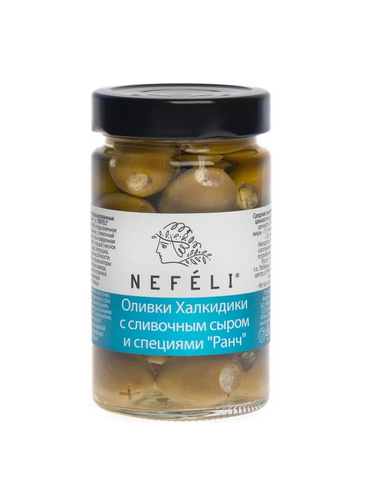 - Оливки NEFELI Халкидики с сливочным сыром и специями Ранч 290 гр. ГРЕЦИЯ