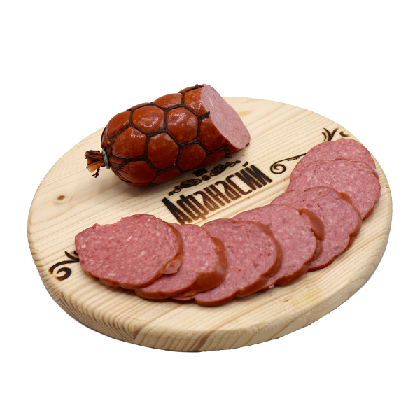 Варено-копченый сервелат "Европейский" сделан из фермерской говядины, филе грудки цыплёнка и шпика с добавлением ароматного состава специй. На Афанасии технологический процесс прост и состоит из нескольких этапов: составление фарша, формовка, вязка, варка и копчение на натуральной ольховой щепе. Получается аппетитный продукт с гармоничным сочетанием рубленого шпика и нежного мяса от фермерских хозяйств. А мелкозернистая структура и еле уловимый аромат "дымка" придают сервелату особый вкус, ярко выделяющий продукт от конкурентов.