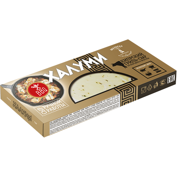 «Халуми BBQ» — мягкий сыр из коровьего молока, традиционный в некоторых регионах Средиземноморья. Его можно жарить на гриле, сковороде или мангале. Сыр сохраняет упругую слоистую структуру и не растекается, покрываясь аппетитной хрустящей корочкой. В составе «Халуми» много белка, а содержание углеводов близко к нулю, поэтому он отлично подойдет тем, кто следит за фигурой и придерживается правильного питания. Его нежный сливочный вкус и неповторимый аромат специй BBQ гармонично сочетается со вкусом овощей гриль, горячими тостами и жареным мясом. Свежий «Халуми» можно заморозить, чтобы продлить срок годности, а после разморозки он полностью сохранит свою структуру и вкусовые качества.