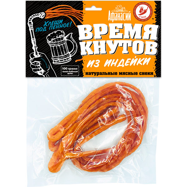 Мясные кнуты сделаны из фермерской индейки, поэтому их вкус получается ярким и запоминающимся. Мини упаковка кнутов 100г очень удобная для транспортировки и употребления. Снеки - идеальная закуска к пенному или прекрасный перекус во время дня.
